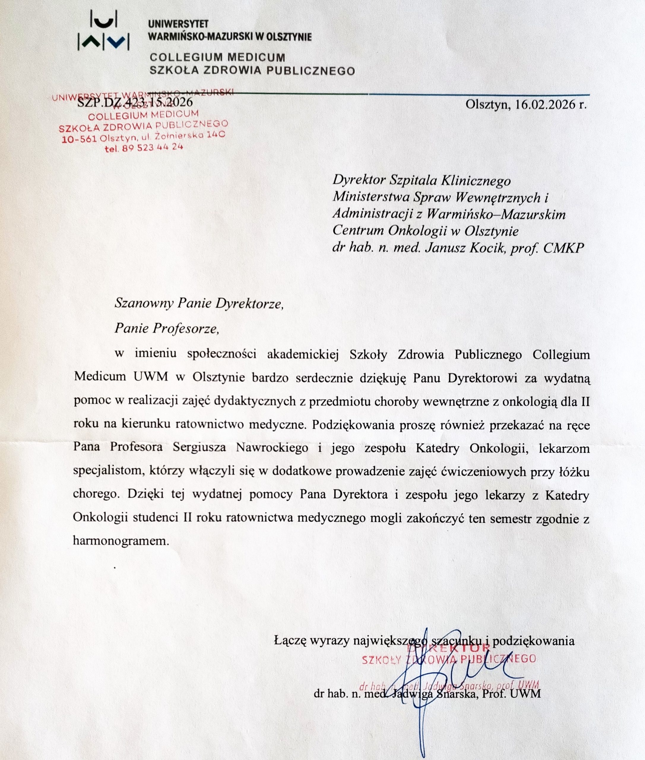 Szpital KlinicznyMinisterstwa Spraw Wewnętrznych i Administracjiz Warmińsko - Mazurskim Centrum Onkologii w OlsztynieClinical Hospital of the Ministry of Internal Affairs and Administration with the Warmia-Mazury Oncology Centre in Olsztyn