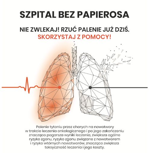 Każdego roku diagnozuje się ponad 22 000 nowych zachorowań na nowotwory złośliwe płuca. Jako onkologiczna Placówka medyczna, która od kilku lat uczestniczy w akcji „Szpital bez papierosa”, przyłączamy się do apelu o zerwanie z „palącym” nałogiem!
