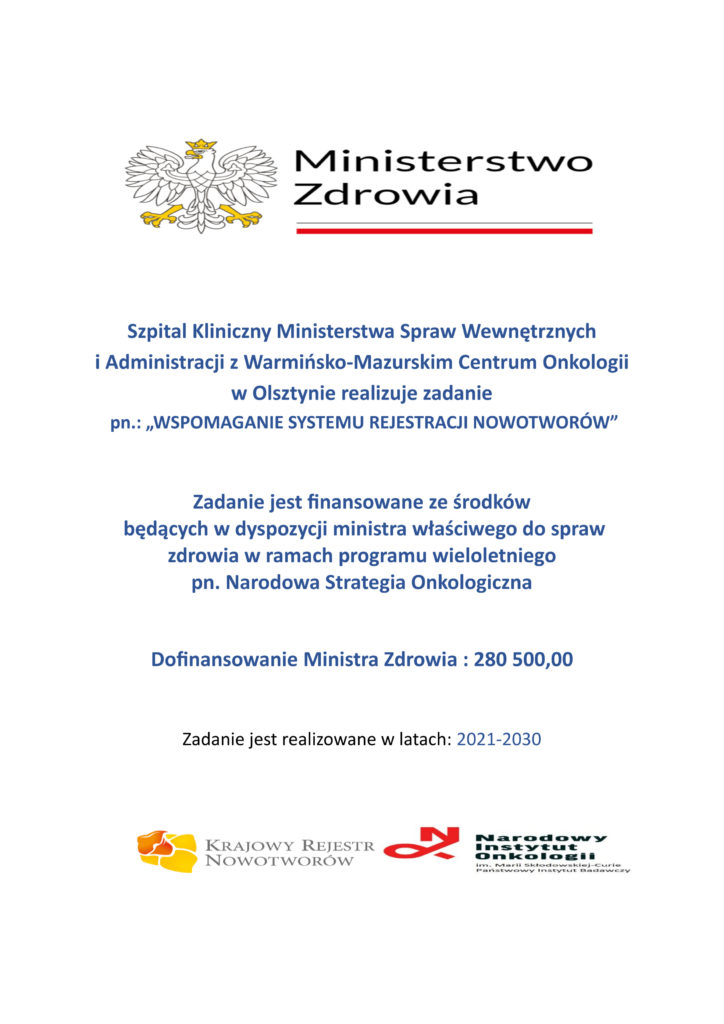 Szpital KlinicznyMinisterstwa Spraw Wewnętrznych i Administracjiz Warmińsko - Mazurskim Centrum Onkologii w OlsztynieClinical Hospital of the Ministry of Internal Affairs and Administration with the Warmia-Mazury Oncology Centre in Olsztyn